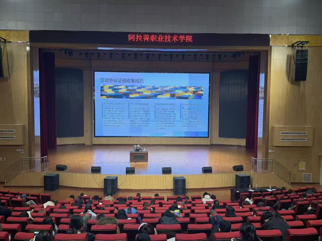 为增强学生的法治意识,帮助同学们明晰实习与就业中的法律权益,提前筑牢职场风险防线,11月19日下午,医护系联合内蒙古凯创律师事务所于大学生活动中心举办劳动法解读专题讲座。医护系24级高职各班学生代表及相关师生共计300余人参加本次活动。