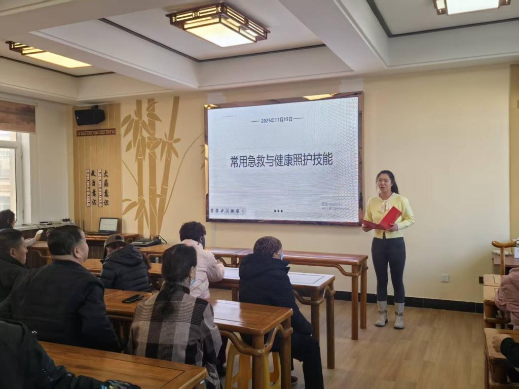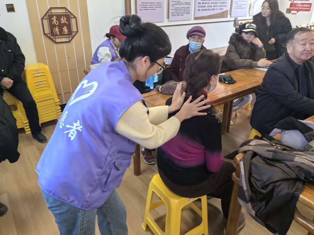 活动中,志愿者立足护理、康复专业技能,先通过课件讲解康复按摩的“镇痛、促愈、改善功能”等专业作用,再以“理论+实操”形式演示心肺复苏(精准把控按压频率、深度)、海姆立克急救法(气道梗阻应急技巧),并现场教学肩部、背部康复按摩手法,帮助老人缓解劳损酸痛。