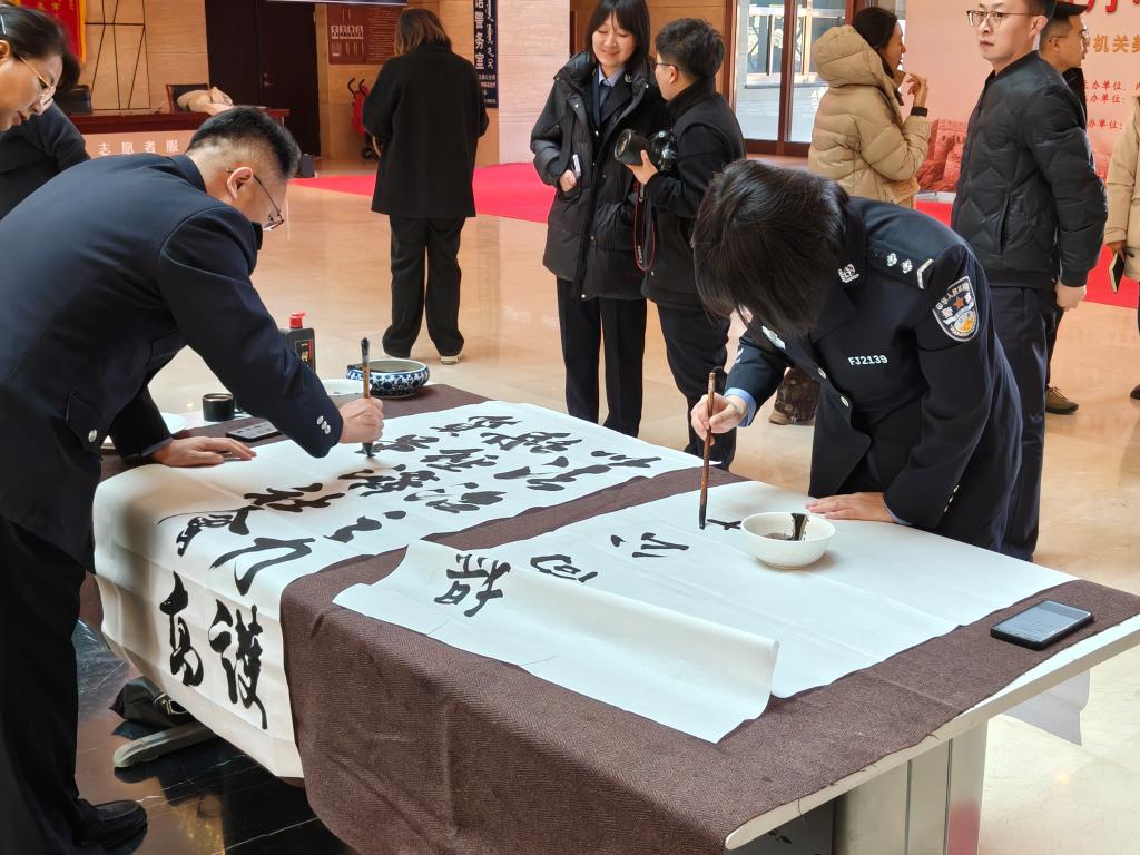 本次展览汇集全区民警、辅警及艺术家创作的书画、摄影佳作,以公安工作为鲜活底色,以忠诚担当为精神内核,用艺术笔触与镜头语言立体呈现法治公安建设成效。参观现场,大家在讲解员引导下逐一驻足观赏:打击犯罪的硬核瞬间彰显法律威严,服务群众的温情片段传递警民同心,一张张照片、一幅幅书画背后的坚守与奉献,让全体人员深切感悟到公安队伍“执法为民、公正司法”的职业操守,更直观理解了习近平法治思想在基层治理中的生动实践,深刻认识到法治是守护社会安宁与群众权益的坚实屏障。