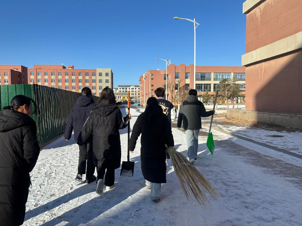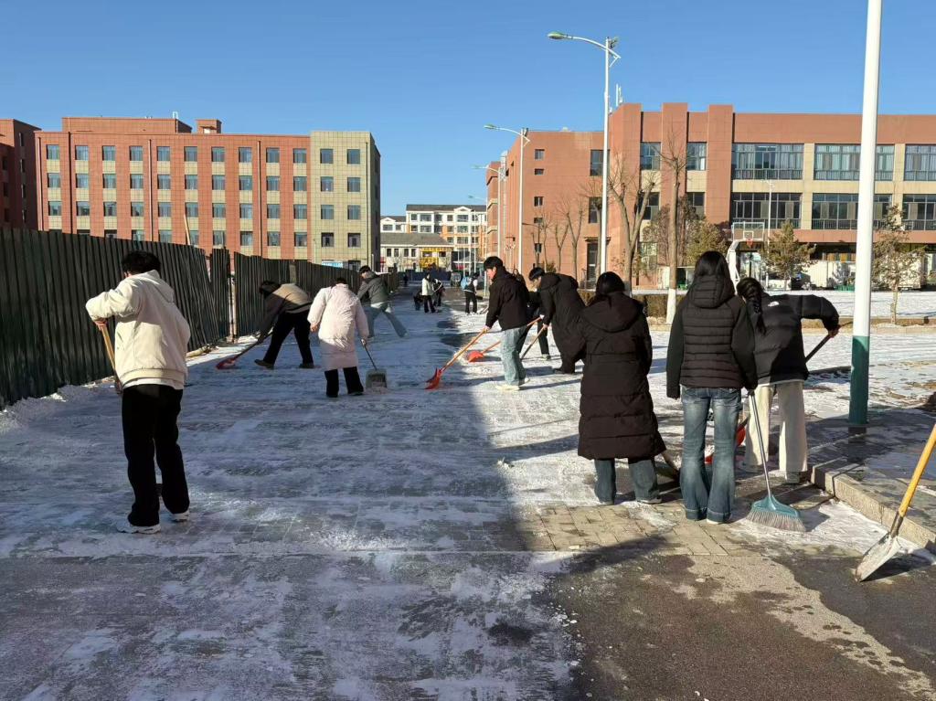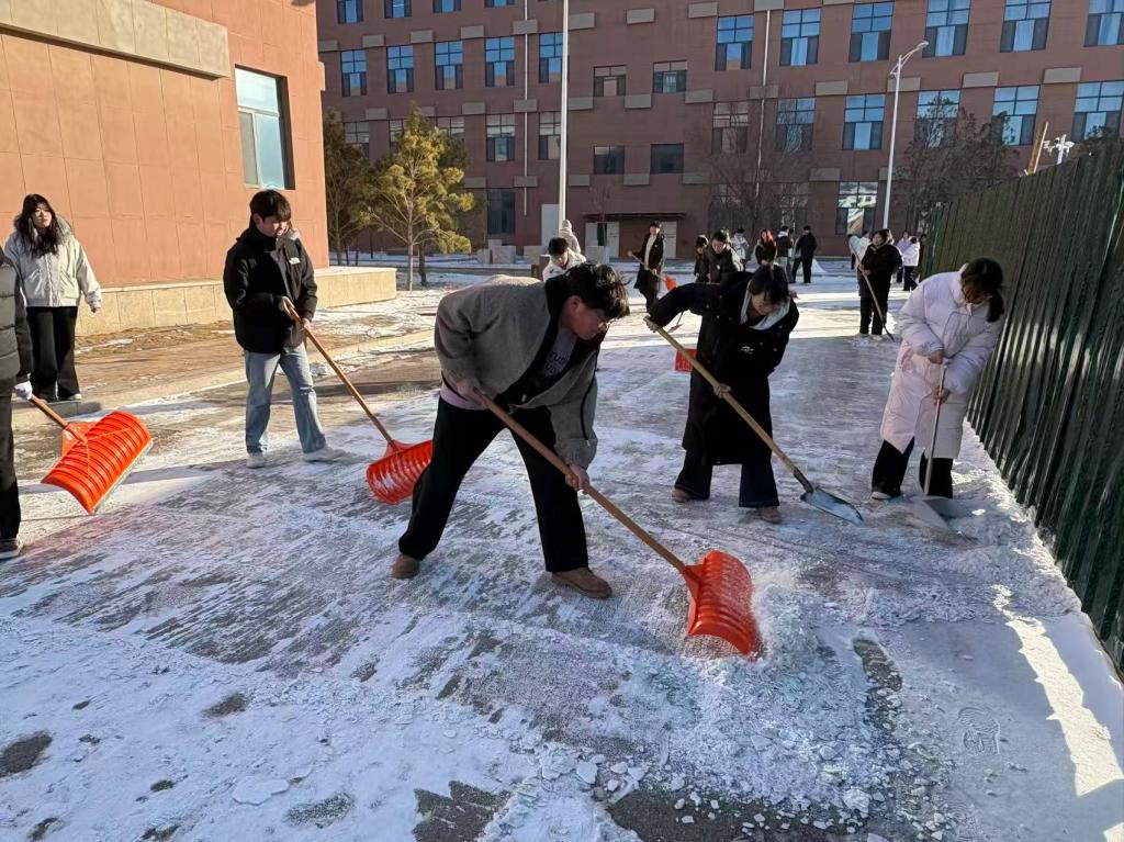 活动中,志愿者们分工协作、高效作业,用铁锹破除冰层、扫帚清扫积雪,对重点区域积雪积冰进行全面清理。经过两个多小时清理,校园主要通行通道积雪积冰全部清除,有效消除了安全隐患,为师生打造了安全畅通的出行环境。
